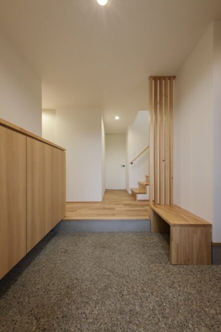 玄関を共有しつつ、1階・2階でそれぞれ独立した暮らしが叶う二世帯住宅です。
